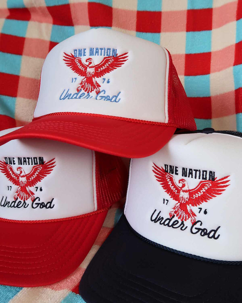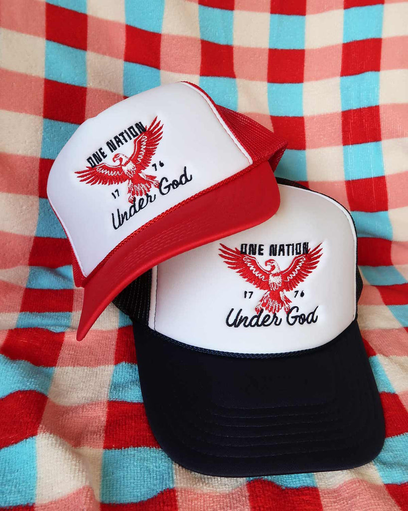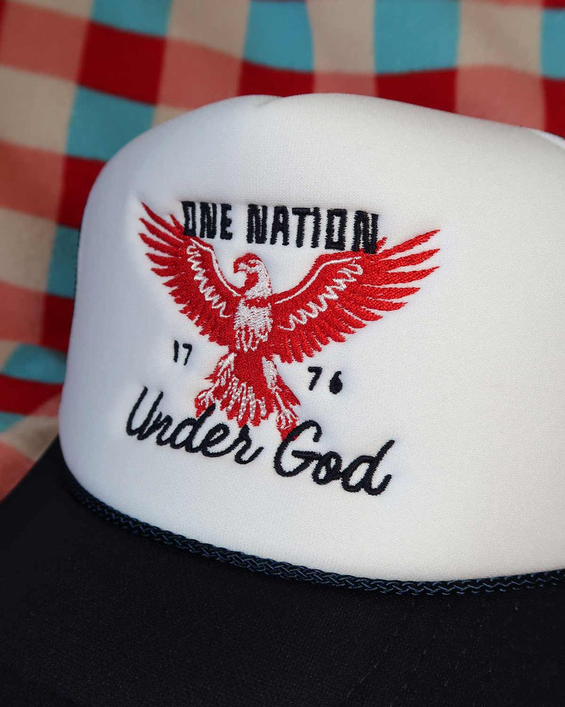 "One Nation Under God" Patriotic Trucker Hat – Bold Faith, Classic American Style