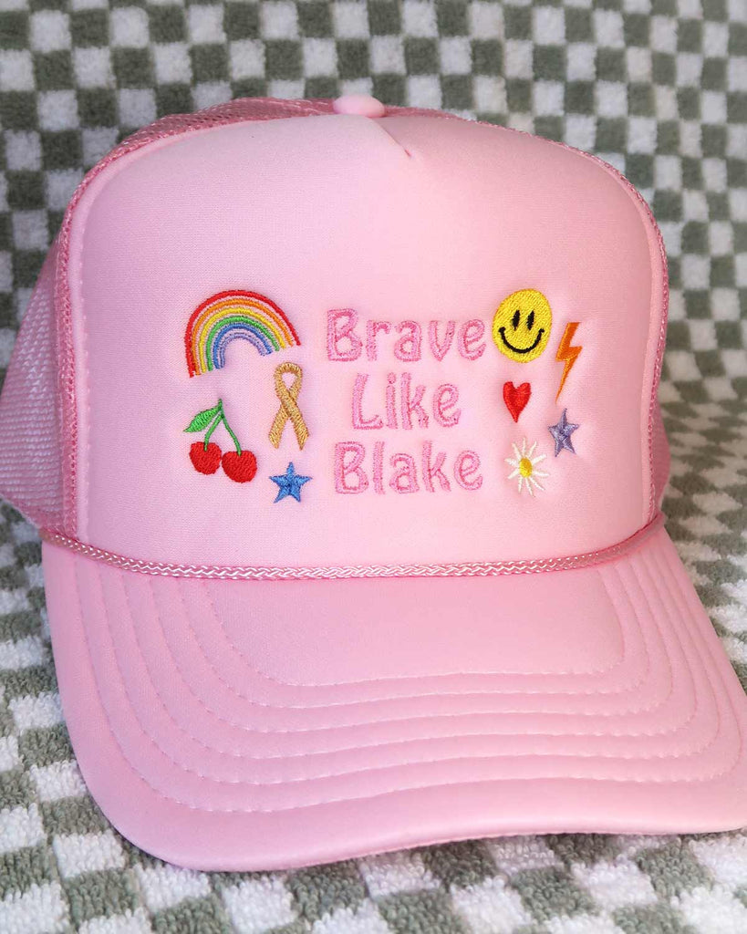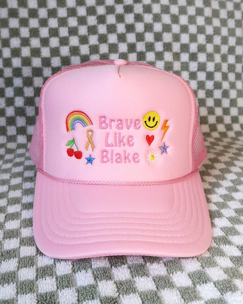 Personalized Cancer Charm Trucker Hat – Light Pink Embroidered