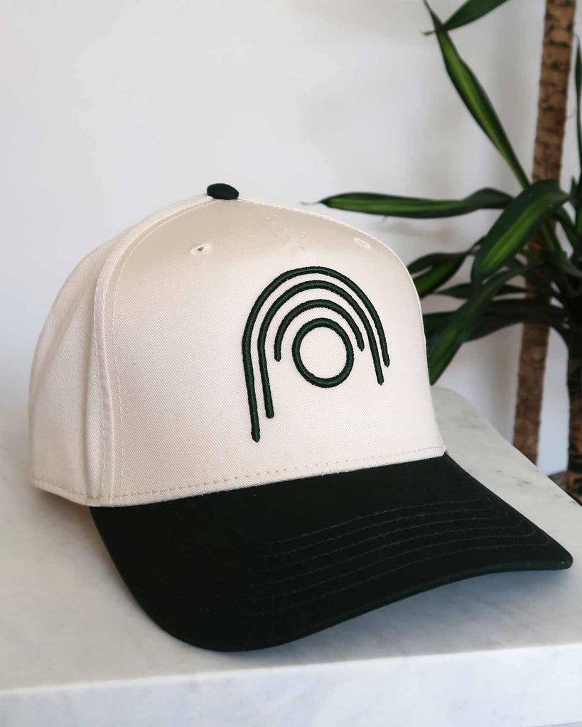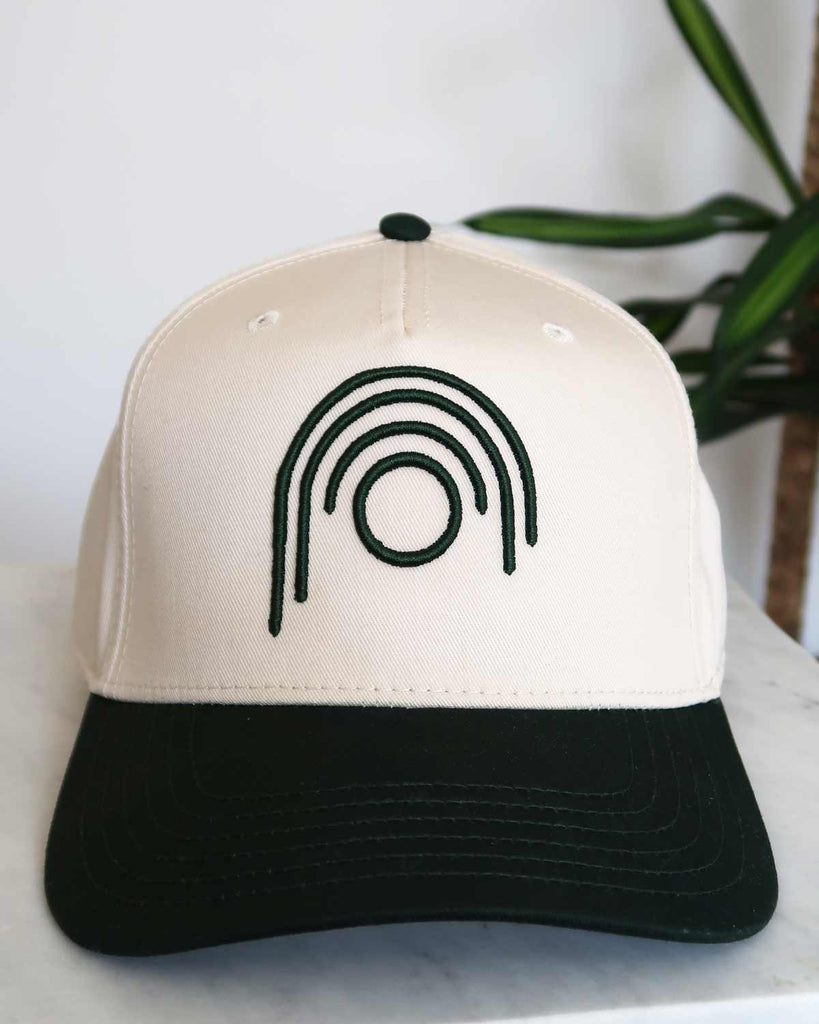 Elevate your hat game with our 3D embroidered Sundrop Hat, the perfect blend of playful sophistication and trendy streetwear. Featuring a high-quality, structured snapback cap with a dark green brim and a neutral off-white crown, this hat is designed for style and comfort.