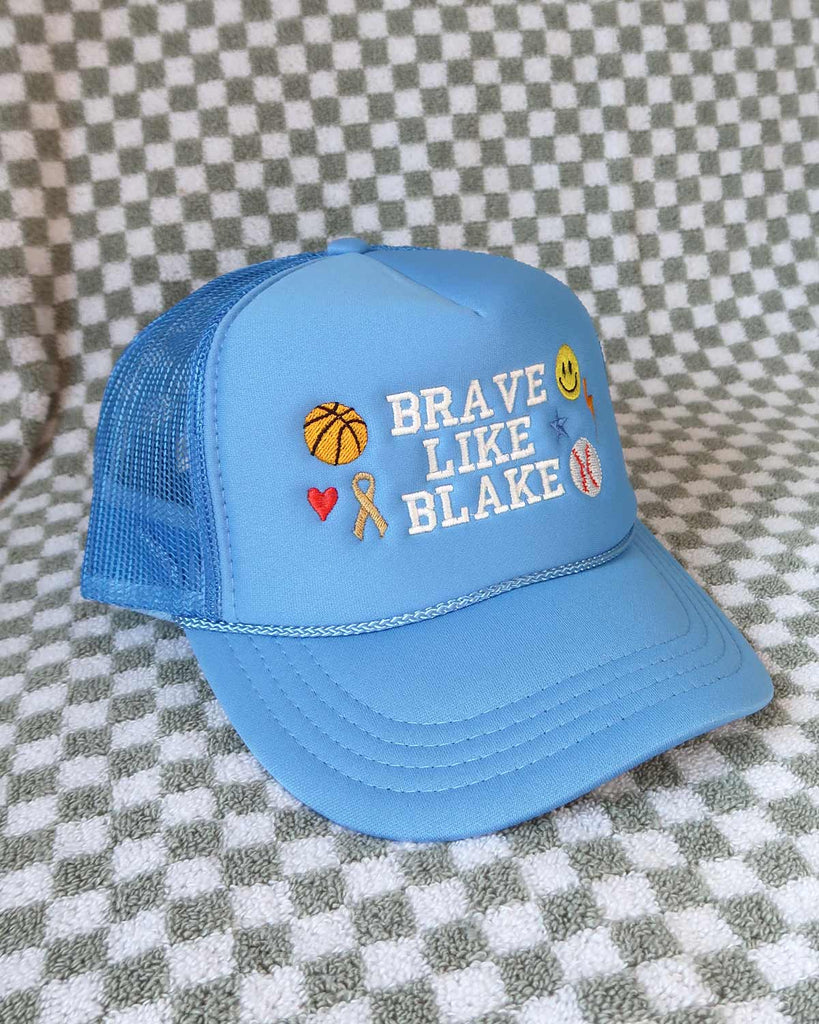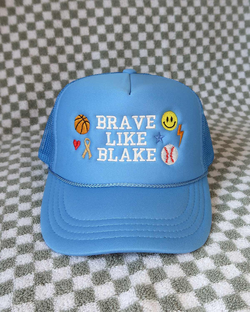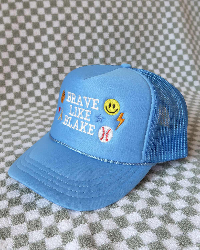Personalized Sports Charm Trucker Hat for Kids – Blue Embroidered
