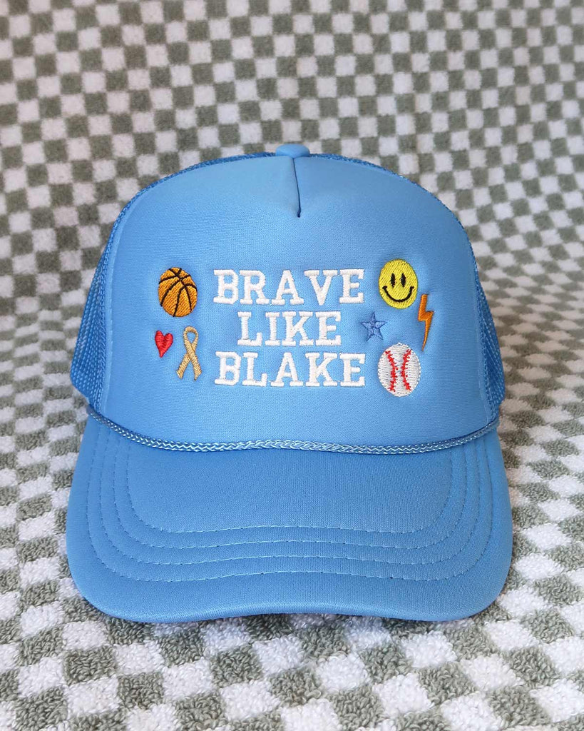 For the little athlete with a big heart. The Personalized Sports Charm Trucker Hat for Kids is all about courage, strength, and team spirit — whether they’re supporting a loved one with cancer or proudly wearing their own story. This bold blue 5-panel trucker features a breathable mesh back, high-crown foam front, and custom embroidery in an athletic font that brings sporty energy and personal meaning together.
