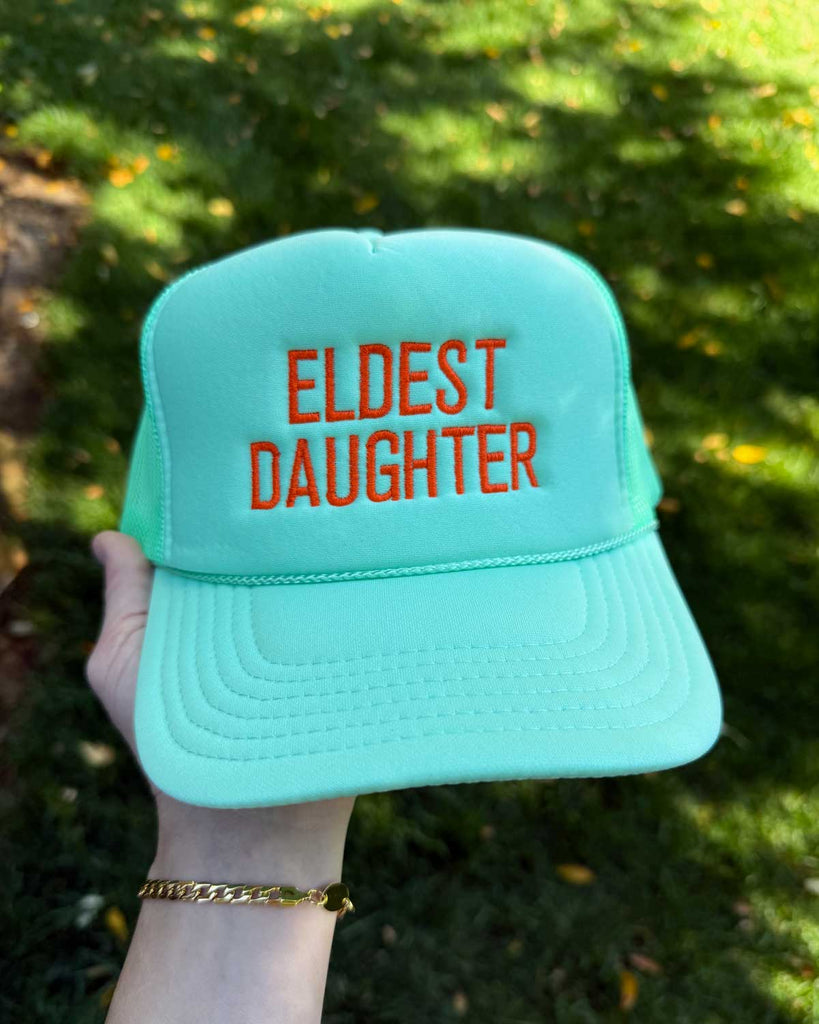 Step into Taylor’s Showgirl era with bold style. This high-profile Otto foam front trucker hat makes a statement with its structured crown and breathable mesh back, perfect for concerts, festivals, or everyday wear. Designed with a snapback closure for an adjustable fit, this cap delivers both comfort and standout flair. Embroidered across the front in a bold design, “Eldest Daughter” celebrates one of the most iconic fan-favorite tracks from Taylor Swift’s newest album, The Life of a Showgirl. A must-have piece for Swifties who love mixing playful nostalgia with modern edge.