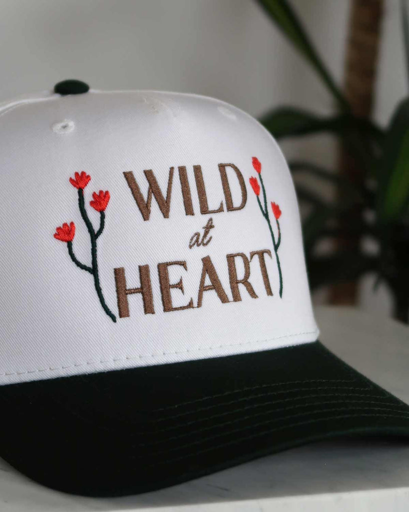"Wild at Heart" Embroidered Hat – White & Green 5-Panel Cap