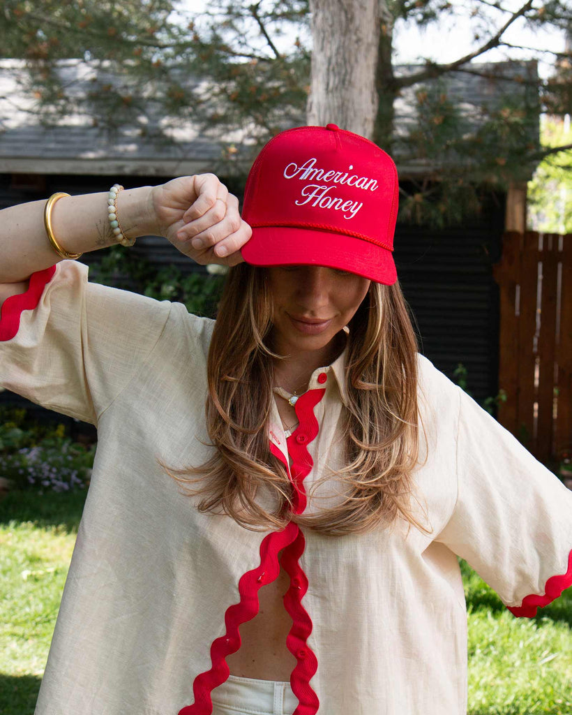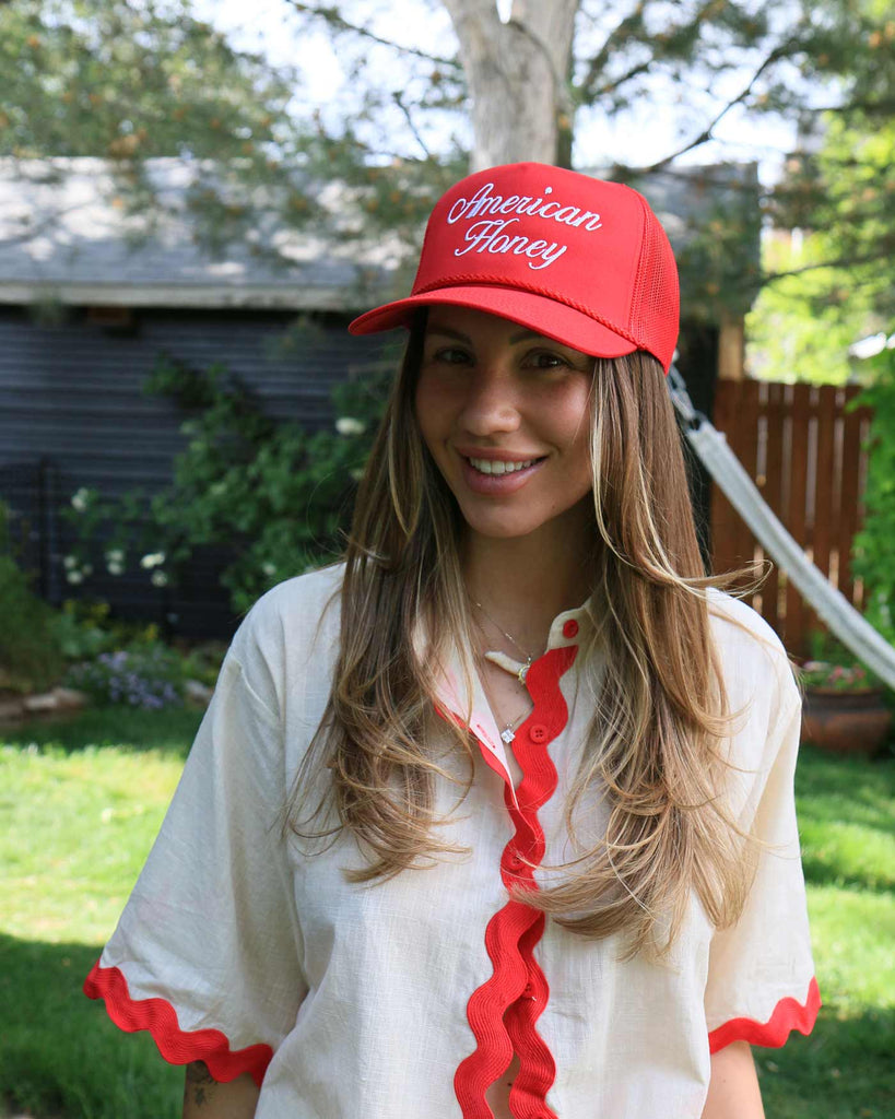 "American Honey" Red Trucker Hat – Sweet Americana with a Bold, Classic Twist