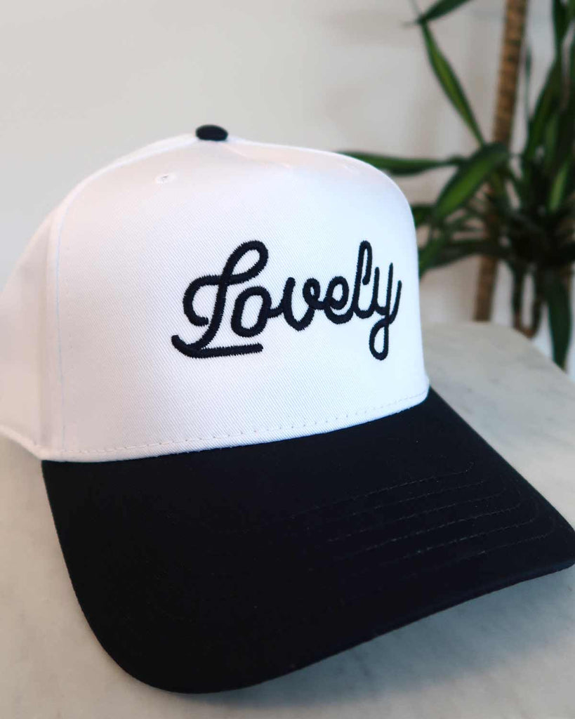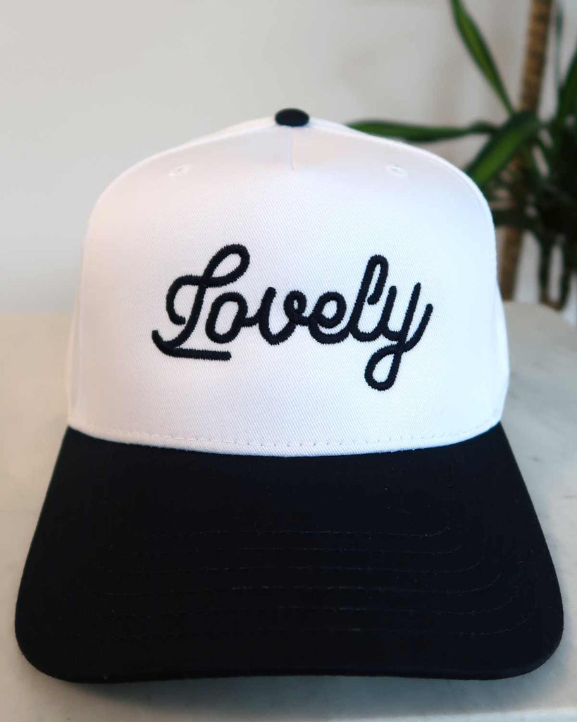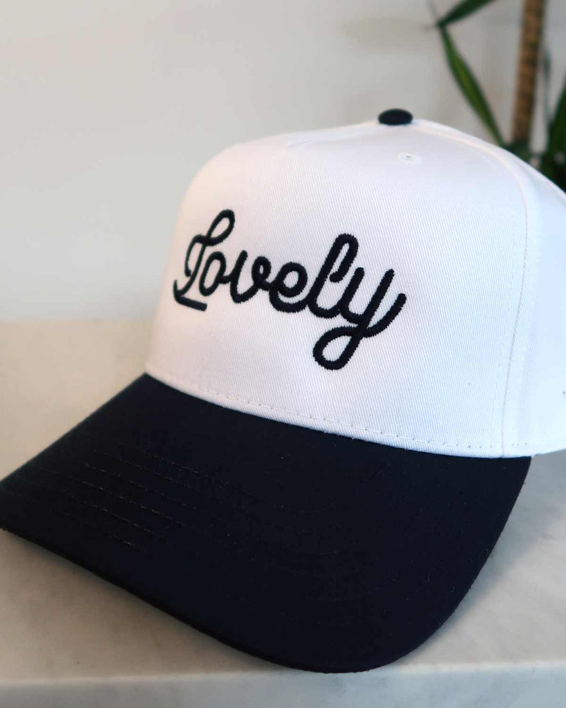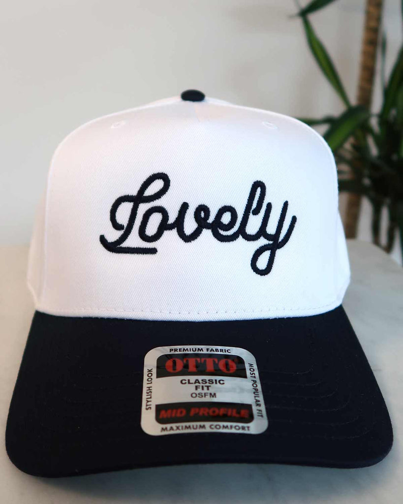 Add a touch of minimalist retro vibes to your wardrobe with our Lovely Cursive Embroidered Hat, thoughtfully designed to evoke a vintage aesthetic while providing contemporary comfort. This five-panel cap features a hand drawn embroidered "Lovely" on the front, capturing the essence of timeless style.