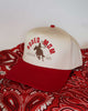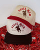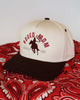Available in two colorways — red and natural or brown and natural — this two-tone 5 panel cap pairs perfectly with denim, boots, or your favorite rodeo-day fit. Designed with a structured mid-profile fit and adjustable closure, it’s made for comfort, durability, and timeless western style.